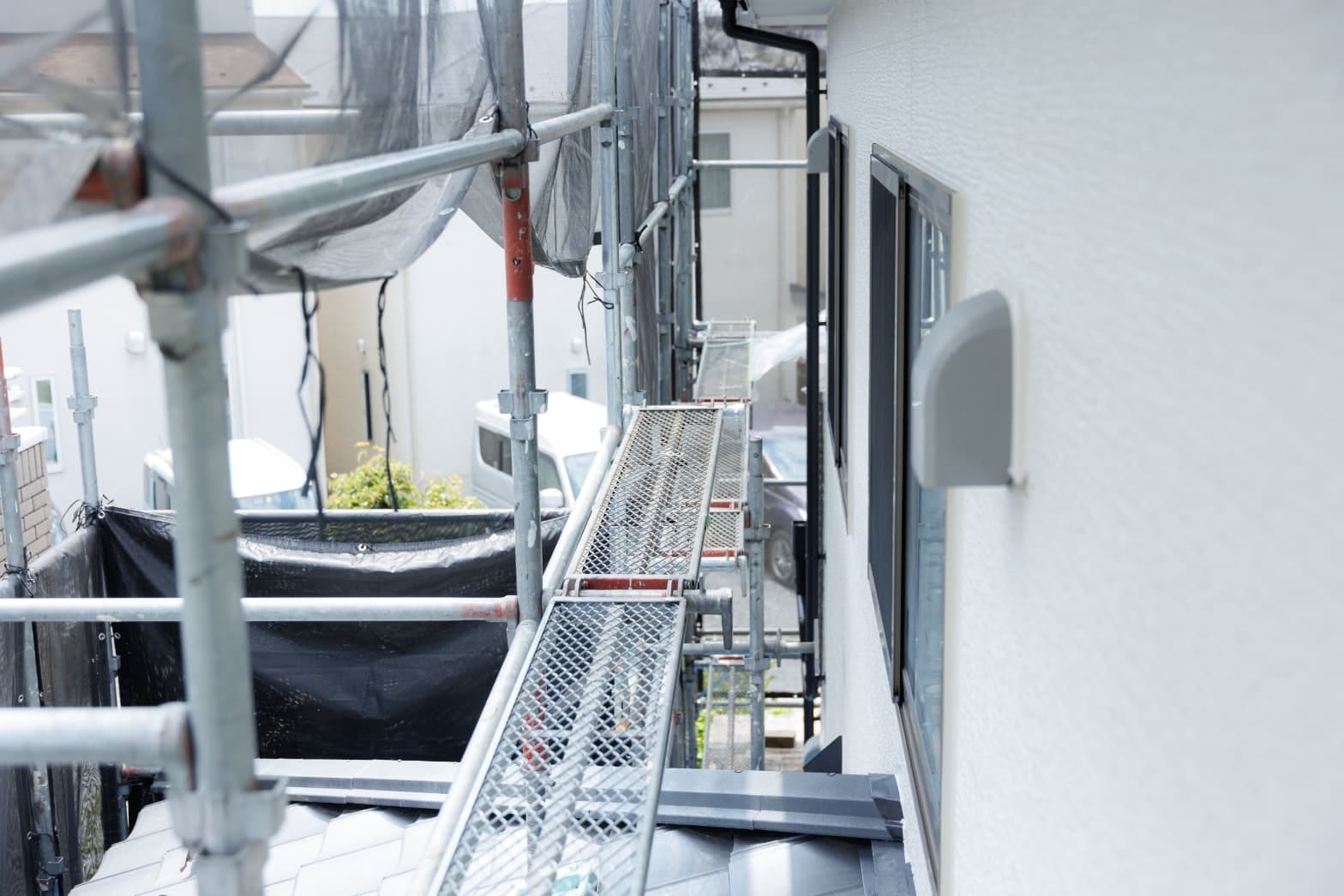 軽量足場を導入し、消音効果のある足場部材を使用しており、