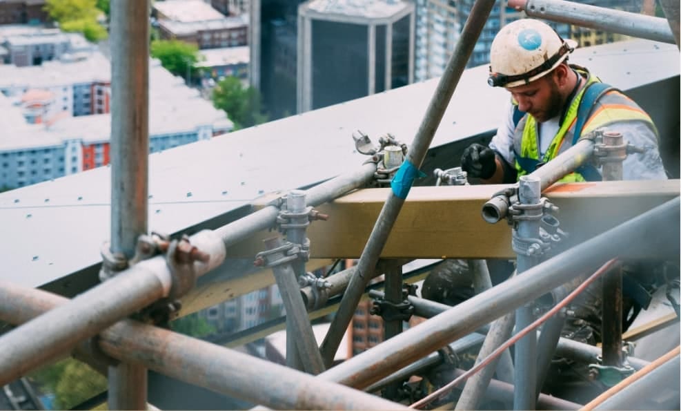 高所での作業を安全かつ効率的に進めるため、揺れやたわみのない頑丈な構造が求められます。当社の経験豊富な職人が、複雑な形状の建物や段差のある現場でも、隙間なく安全な作業床を構築いたします。